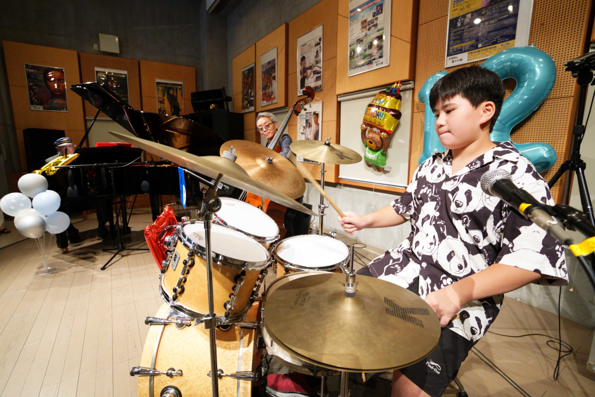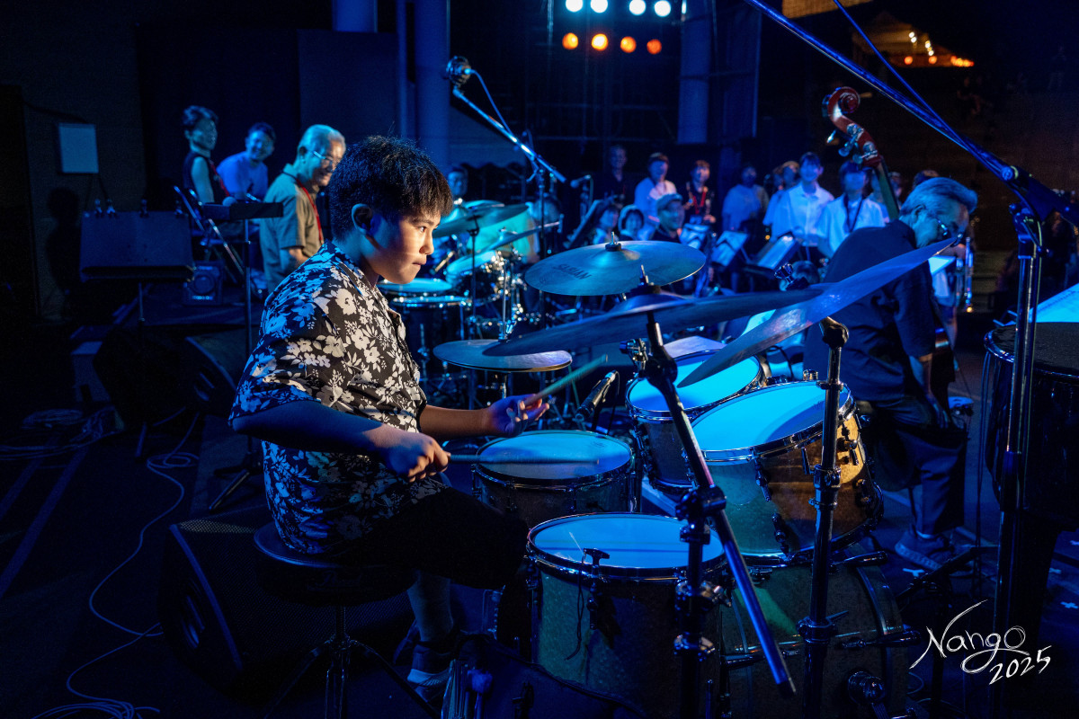昨年7月24日の南郷サマージャズフェスティバル前夜祭では、大人顔負けのドラムソロを披露。約500人の聴衆から割れんばかりの拍手を浴びた。