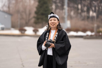 田代えんぶり組のSNS担当者で階上在住の内城晃代さんが現在、2月17日に開幕した「八戸えんぶり」で撮影活動に取り組んでいる。