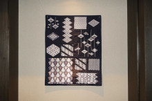 作品には約15種類の技法を施し、四季を表現している部分もあるという。主に白山さんが、菱形の枠がない模様「地刺し」を担当。「間違えられない部分で、目数を数えながら刺すのに苦労した。『梅の花』の模様は春を表現している」(白山さん)という。松屋さんは最も大きな部分に「キジの足」「梅の花」「矢羽根」と呼ばれる技法を組み合わせた模様を刺した。「ただの紺色の布だったものが、一つ一つ刺していくことで菱模様が完成し、デザインを加えることでより美しいものになった」と笑顔を見せる。