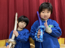 青森のバルーンアート集団「ねじりんご」によるバルーンショーが12月6日、多賀台保育園(八戸市多賀台3)で行われた。