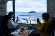 温泉宿「青森屋 by 星野リゾート」(三沢市古間木山)が企画。青森県の郷土料理や方言、祭りばやしなどを、酒のつまみを意味する「あで」に見立てて提供。約1時間30分かけて走る三沢発青森行きの列車で、車窓の雪景色とともに楽しんでもらう。