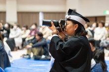 2月11日に開かれた階上町内のえんぶりイベントでカメラを構える内城さん