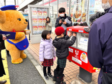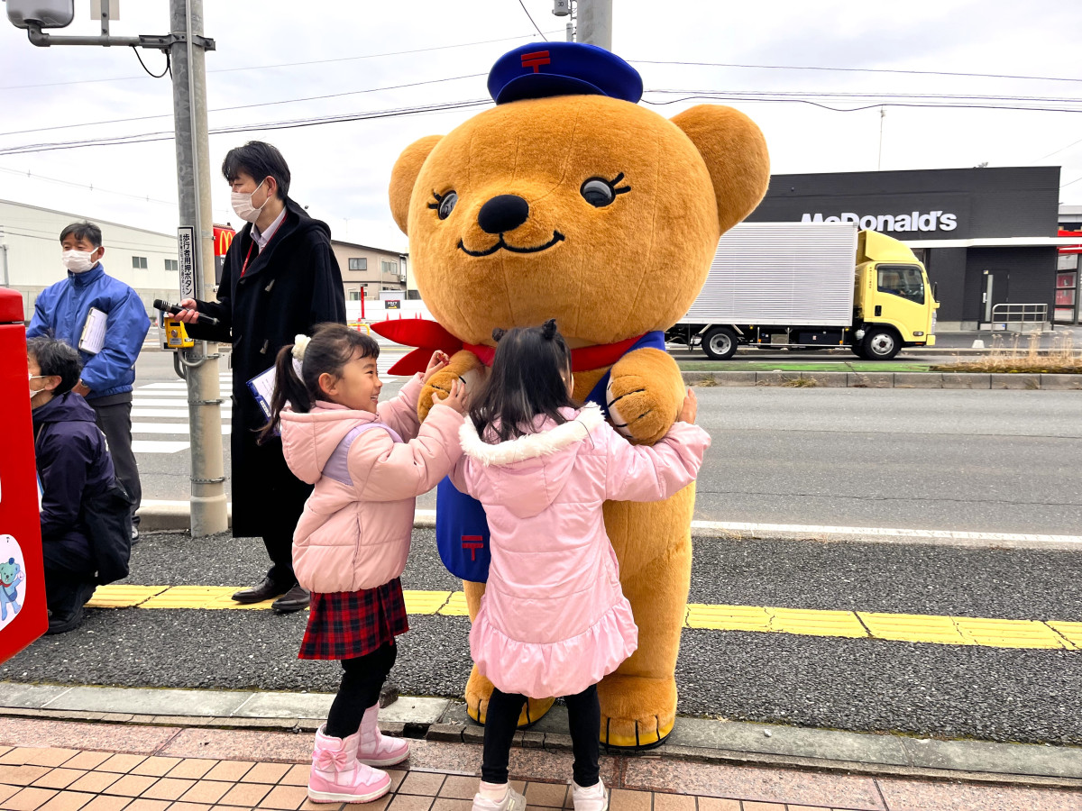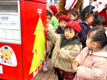 八戸めぐみ幼稚園(八戸市根城)の園児が12月19日、八戸西郵便局(長苗代)で年賀状の投函(とうかん)を体験した。