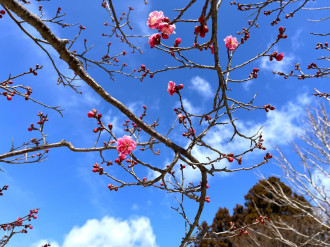 史跡根城(ねじょう)の広場(八戸市根城)の梅が現在、一分咲きとなっている。