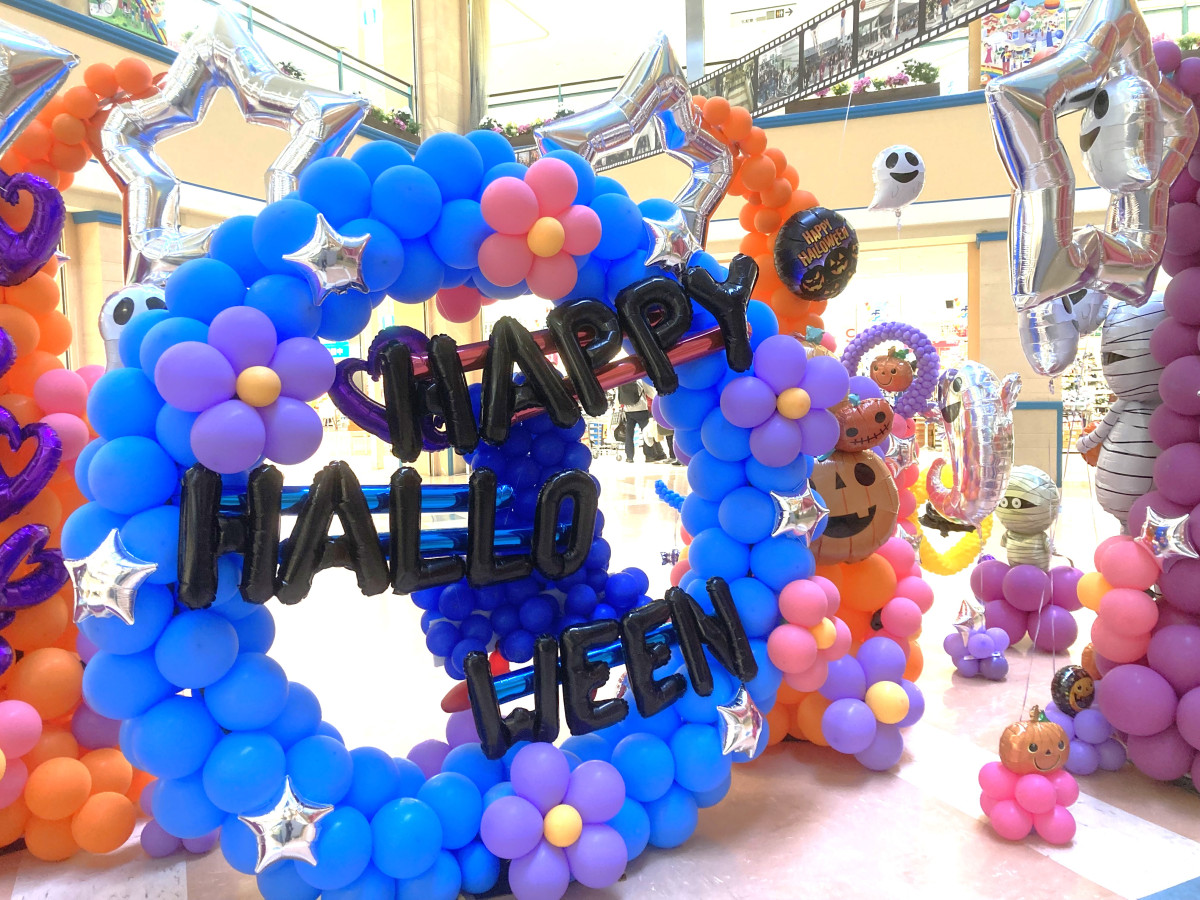 ハロウィーンをイメージした大型バルーンアートが現在、ショッピングセンターラピア(八戸市江陽2)の広場「フェスタプラザ」に展示されている。
