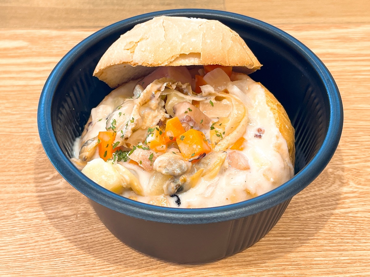 冬季限定メニュー「八戸クラムチャウダー」の提供が11月14日、「蕪島物産販売施設かぶーにゃ」(八戸市鮫町)で始まった。