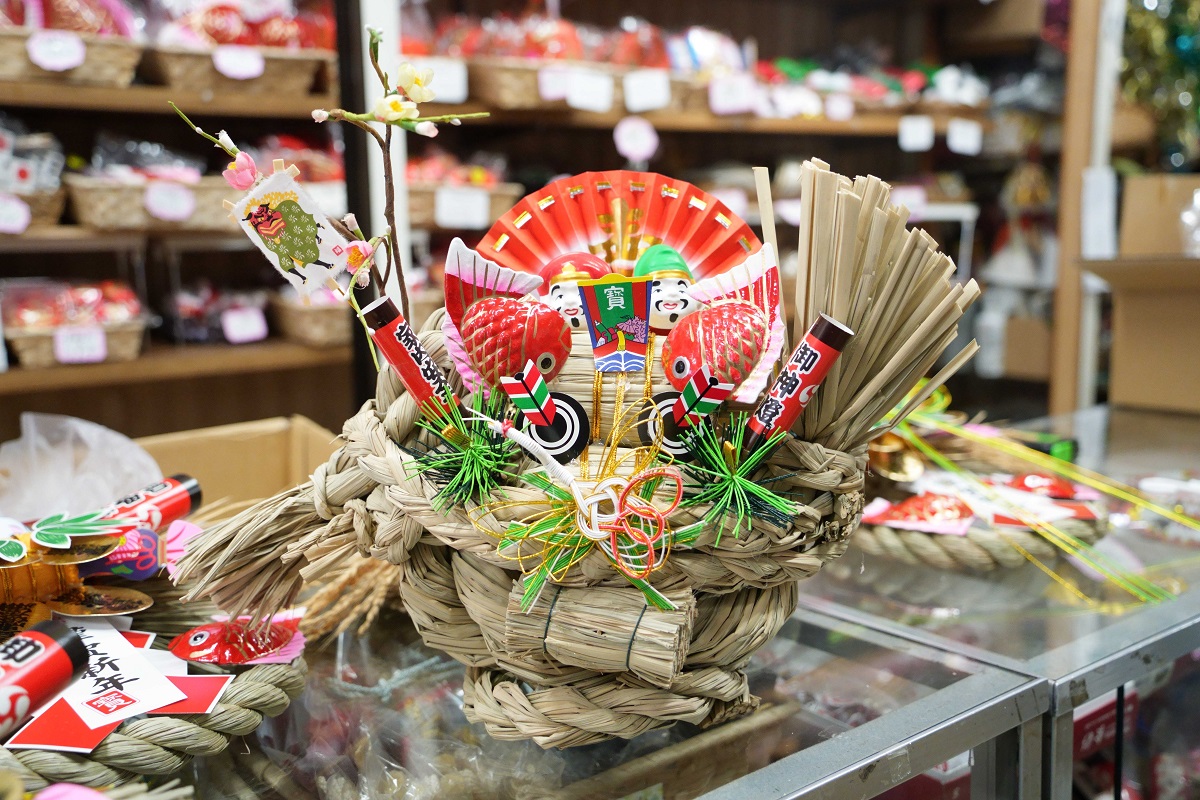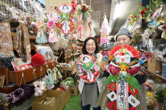 秋田造花店(八戸市十六日町)4代目店主の秋田恵子さんが現在、正月用しめ飾りの製作を進めている。