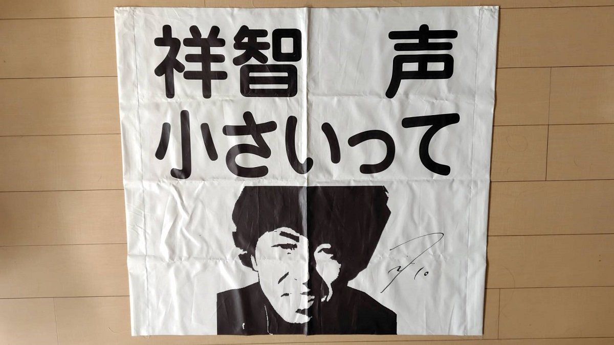 サポーターが使っていた「祥智声小さいって」のフラッグ(写真提供=椿さん)