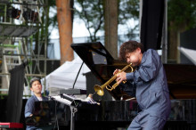 南郷ジャズフェスでアドリブ演奏を披露する類家さん(右)と中嶋さん