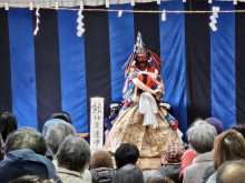 八戸市鮫町地区で活動する鮫神楽保存会の公演が4月11日、鮫町生活館(八戸市鮫町)で開かれた。